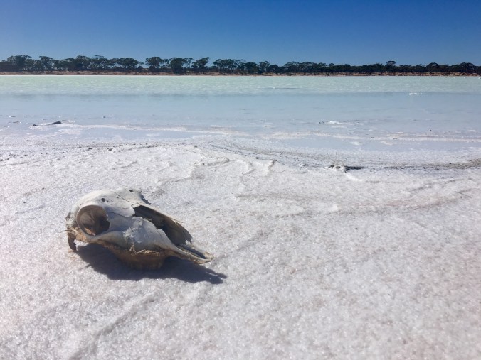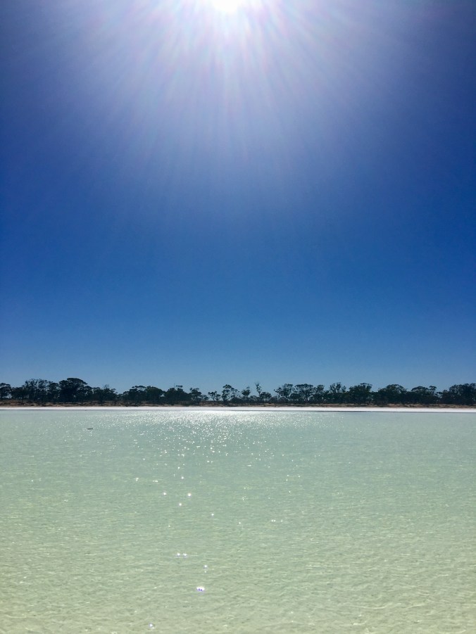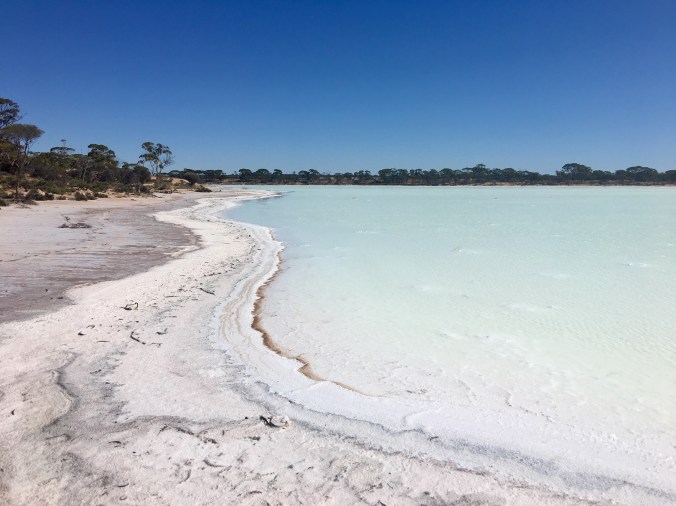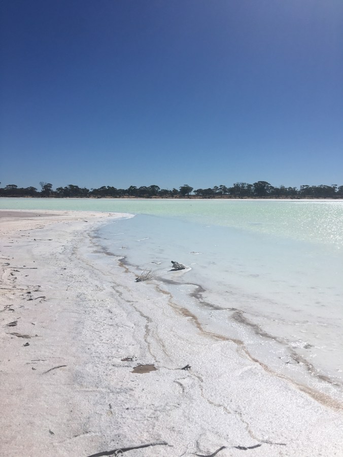 WA recently had a wet summer with heavy rains and floods, particularly in the south. A result of that was the salt lakes in the Wheatbelt filling up with new water. I’ve never seen this particular lake so blue before. The sun made the salt shimmer as it crunched under my shoes. It has crystallised over time and looks almost like ice.